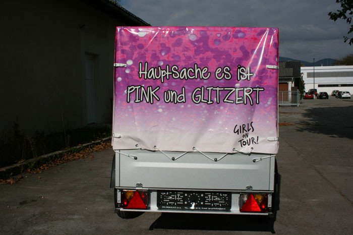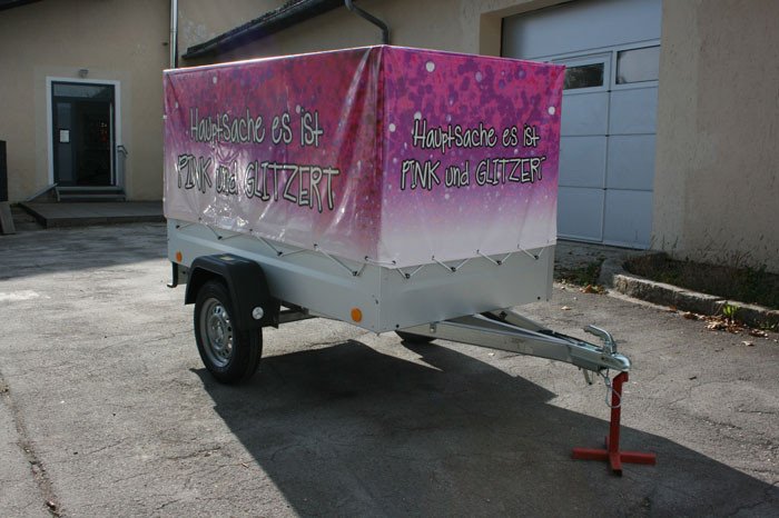 Mit dem stylischen PKW Anhänger, Autoanhänger mit einer pinken Hochplane mit 112 cm sind den einfachen Transportbedürfnissen keine Grenzen mehr gesetzt
