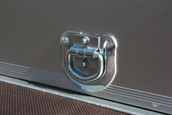 Räder mit Alufelgen seitlich der Ladefläche mit Kunststoffkotflügel