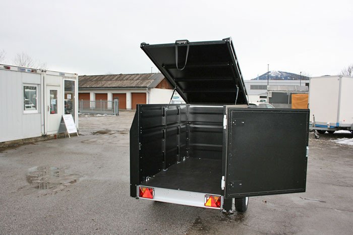 Heckwand zu Seite schwenkbar und absperrbar