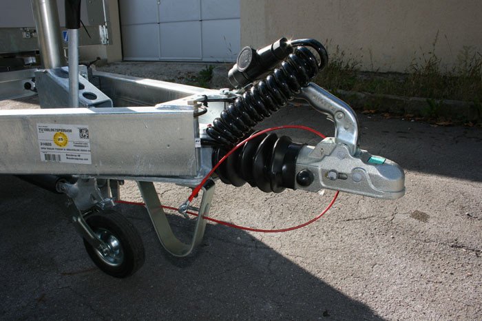 Automatik Stützrad ø 60 mm auf Deichsel montiert, für ein sicheres Abstellen und Rangieren des Anhängers