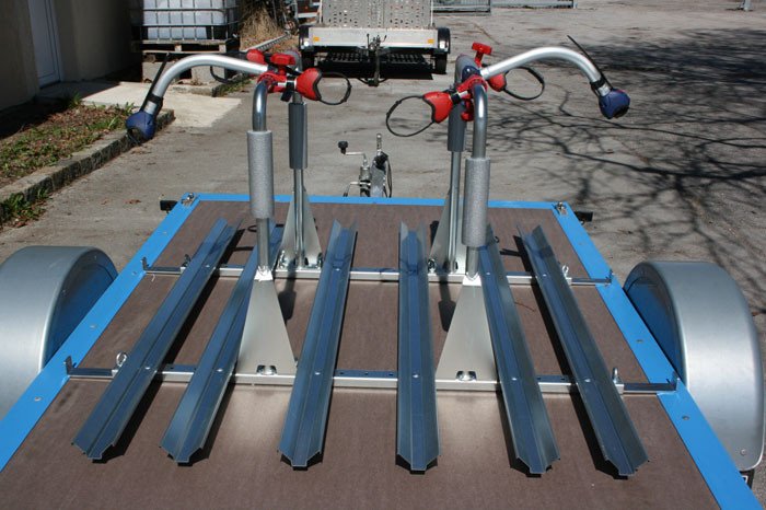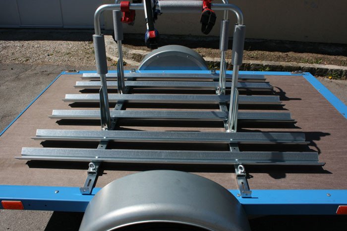 Das Fahrradträgerset für breite Anhänger für 4 Fahrräder besteht aus: