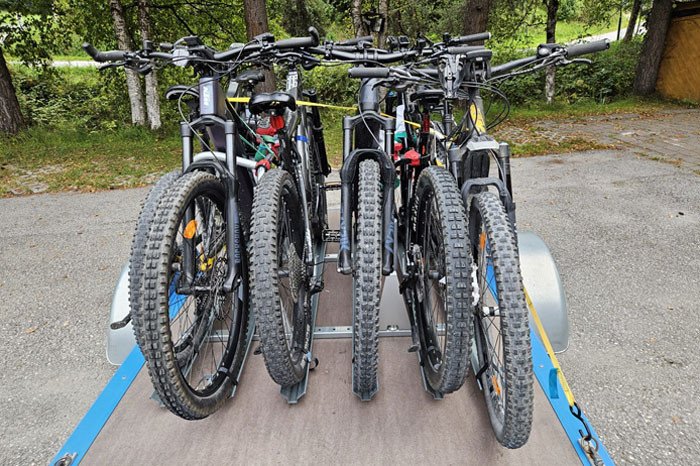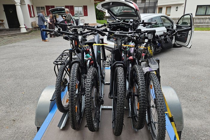 Beim Transport mehrerer Fahrräder sollten diese entgegengesetzt auf dem Anhänger positioniert werden, wobei kleinere Räder immer außen platziert werden sollten. Es ist wichtig, dass die Fahrräder ausschließlich parallel zur Fahrtrichtung transportiert werden, ein querstehender Transport ist nicht zulässig.