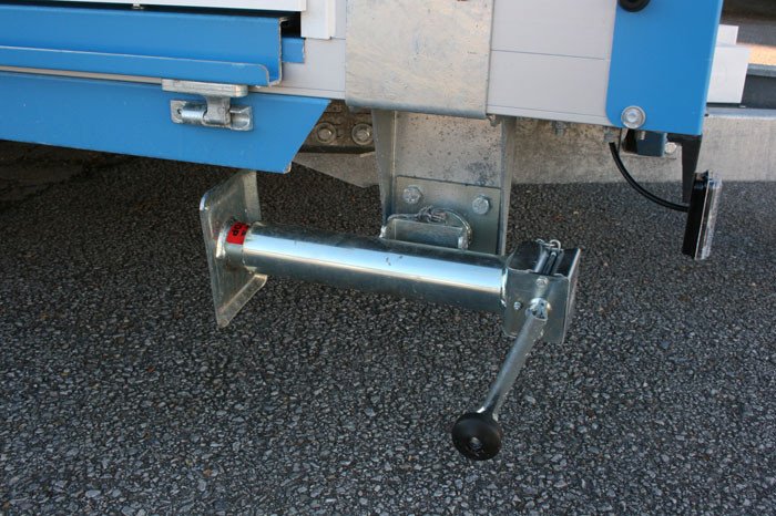 - Durch die 4 abklappbaren Kurbelstützen kann der Toilettenanhänger auf unebenem Gelände ohne Probleme waagerecht aufgestellt werden