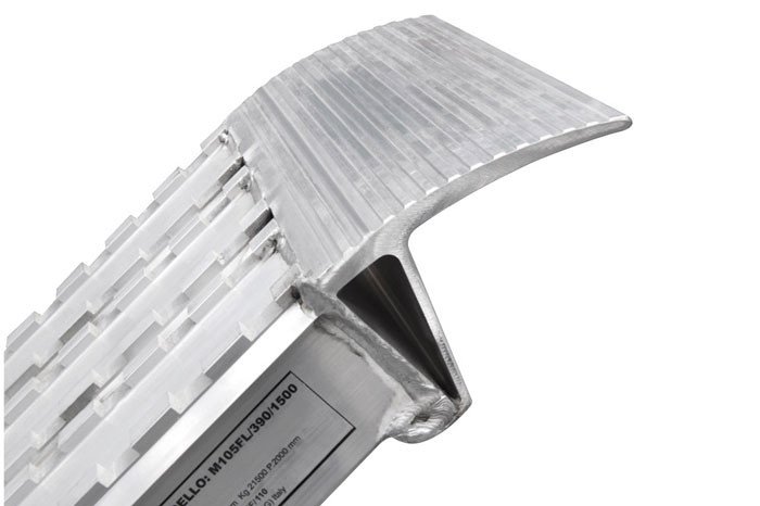 Für den Transport von Schwerfahrzeugen mit Vollgummireifen kann auf Wunsch eine Fräsung mit engerem Abstand von 25/30 mm gewählt werden. Die Rampen sind in verschiedenen Breiten und Kopftypen verfügbar und werden von Herstellern von Schwerlastanhängern geschätzt, da sie sich flexibel an individuelle Anforderungen anpassen. Die Baureihe wird randlos gefertigt und mit passenden Verankerungsketten geliefert.